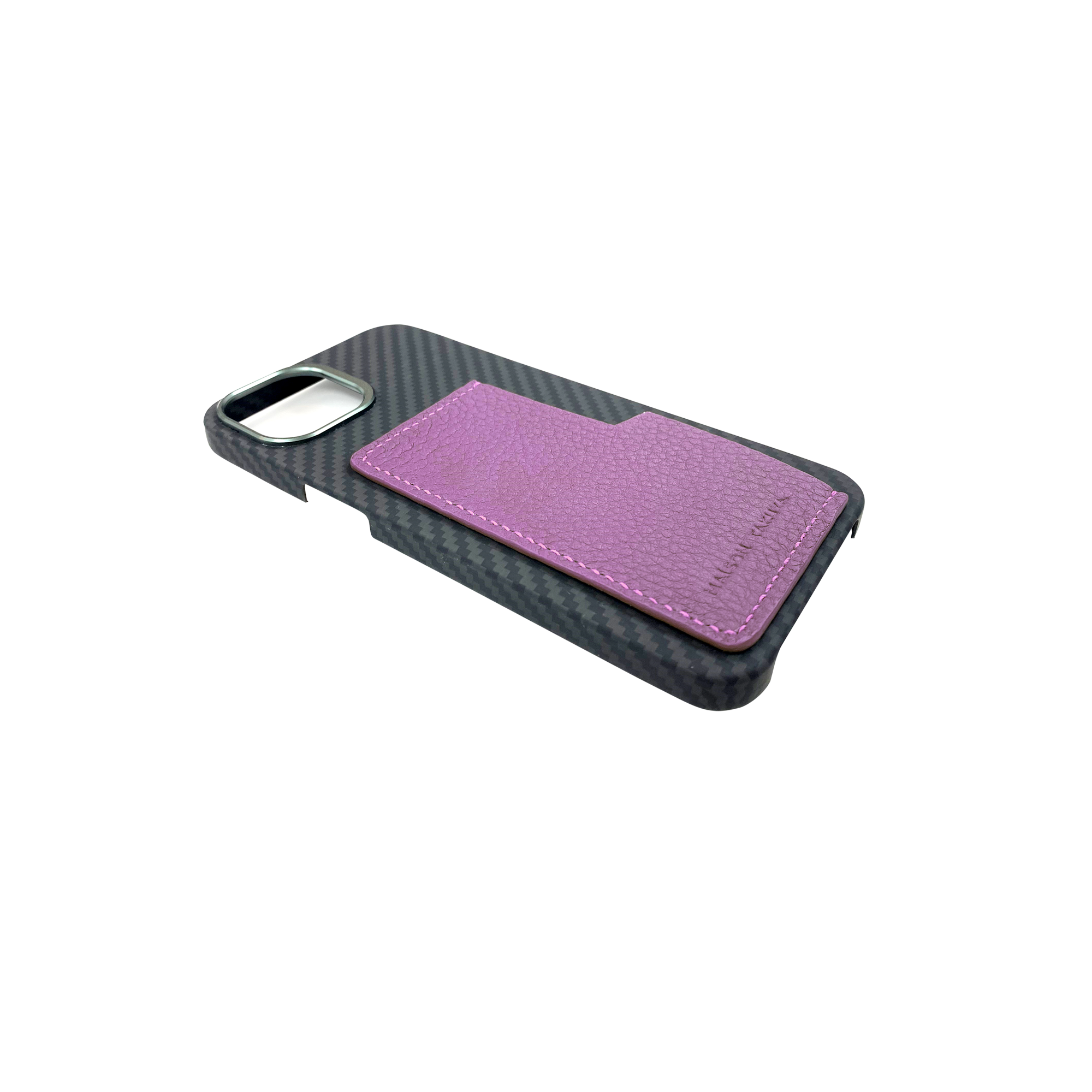 防弾チョッキの素材としても有名な超軽量・高強度を誇るアラミド繊維の「バリスティックファイバー」のプレーンなケースに、ユニークなカッティングでレザーの上質さを際立たせたカードポケットをハンドステッチで配置。ハイテク素材の極薄ケースと天然皮革が織りなすバランスとコントラストが、デバイスの美しさに寄り添います。