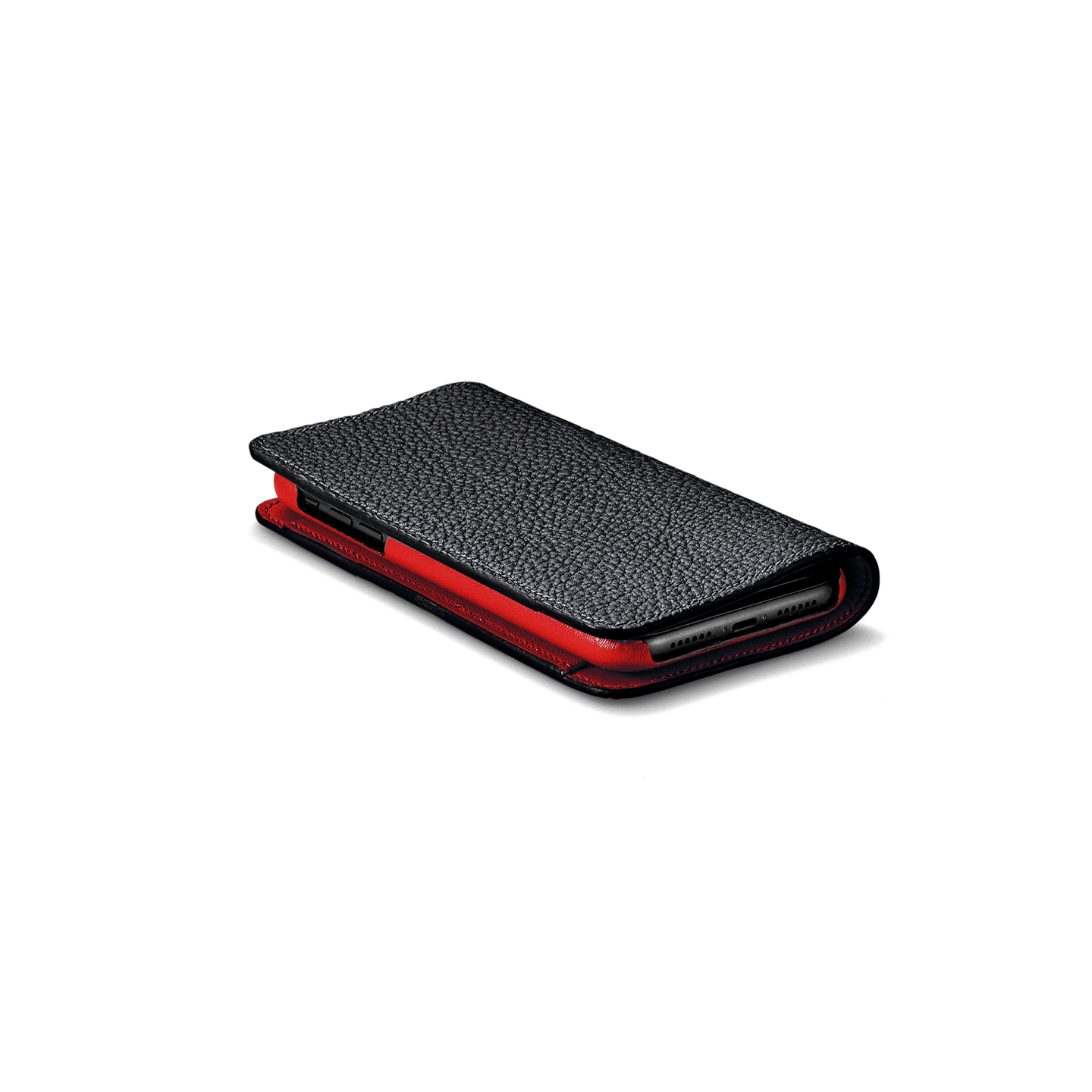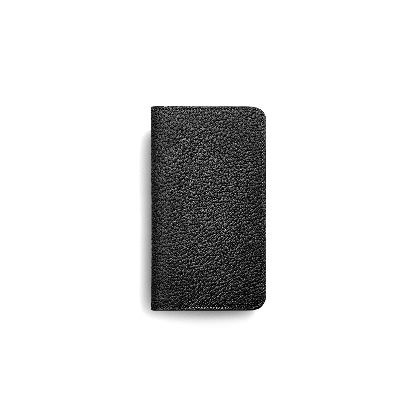 革張りのバックケースとレザーカバーを組み合わせた一体型のコンボケース。メゾンタクヤでは、本革手帳然とした品格を保つため、外側カバーにカメラホールはなく、巻三つ折り仕様で撮影できる仕組みとなっています。カバーを裏返さないことで革が傷みにくく、なによりも通話や操作の姿がスマート。ケースの土台には、防弾チョッキの素材としても有名なアラミド繊維の「バリスティックファイバー」を採用。この高強度・超軽量の極薄下地に上質な天然皮革を貼り合せた、イノベーションとクラフツマンシップの融合したiPhoneケースです。