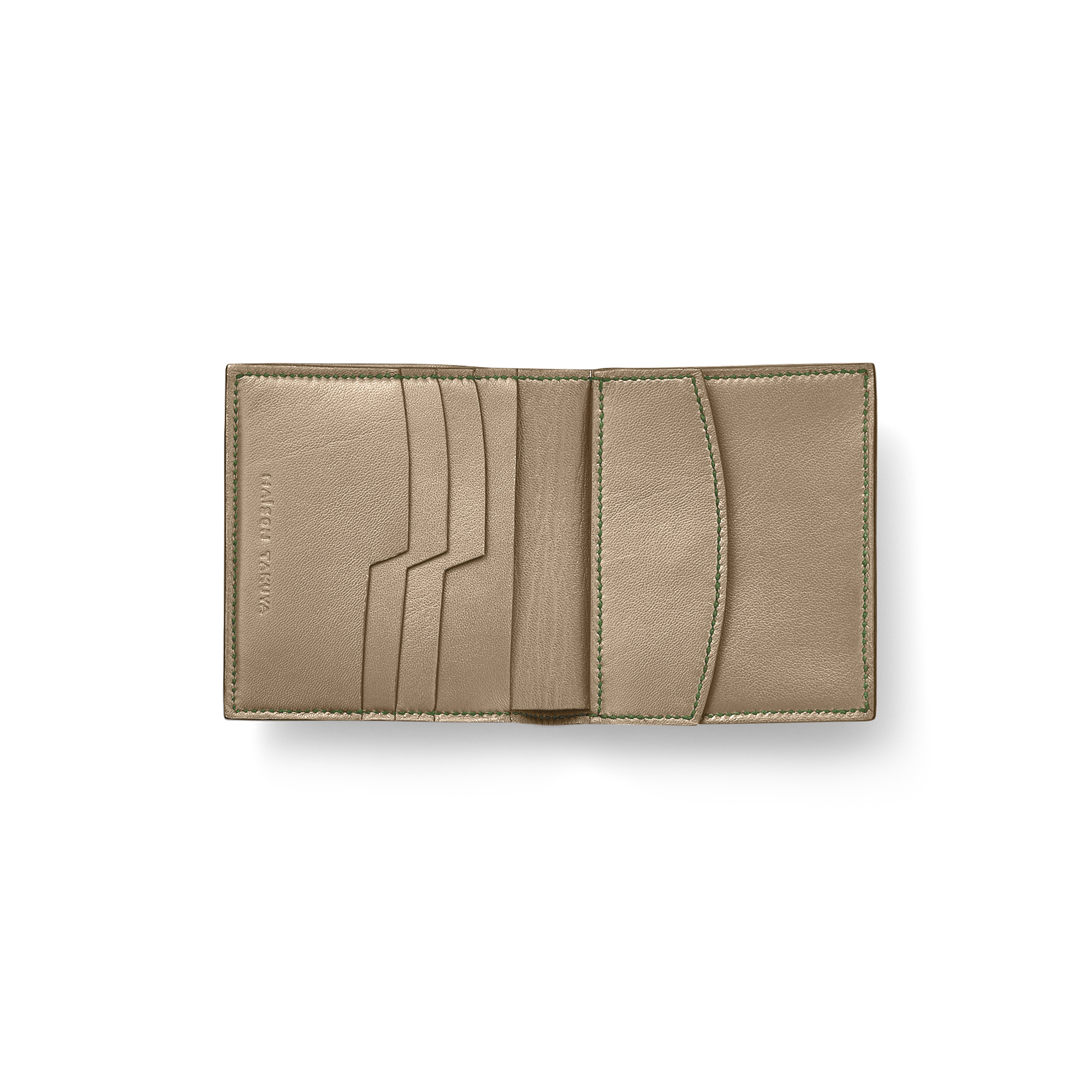1万円札ジャストサイズのコンパクトな2つ折りウォレット。手のひらに収まる小型ボディながらも、お札・小銭・カードそれぞれの専用ポケットを備えています。見開きの左側にある三枚のカードポケットは、スムースな出し入れも考慮された機能美の形状。右側のコインケースはスナップボタンによる開閉。小型バッグやポケットに収納して、身軽に出かけたい方におすすめです。